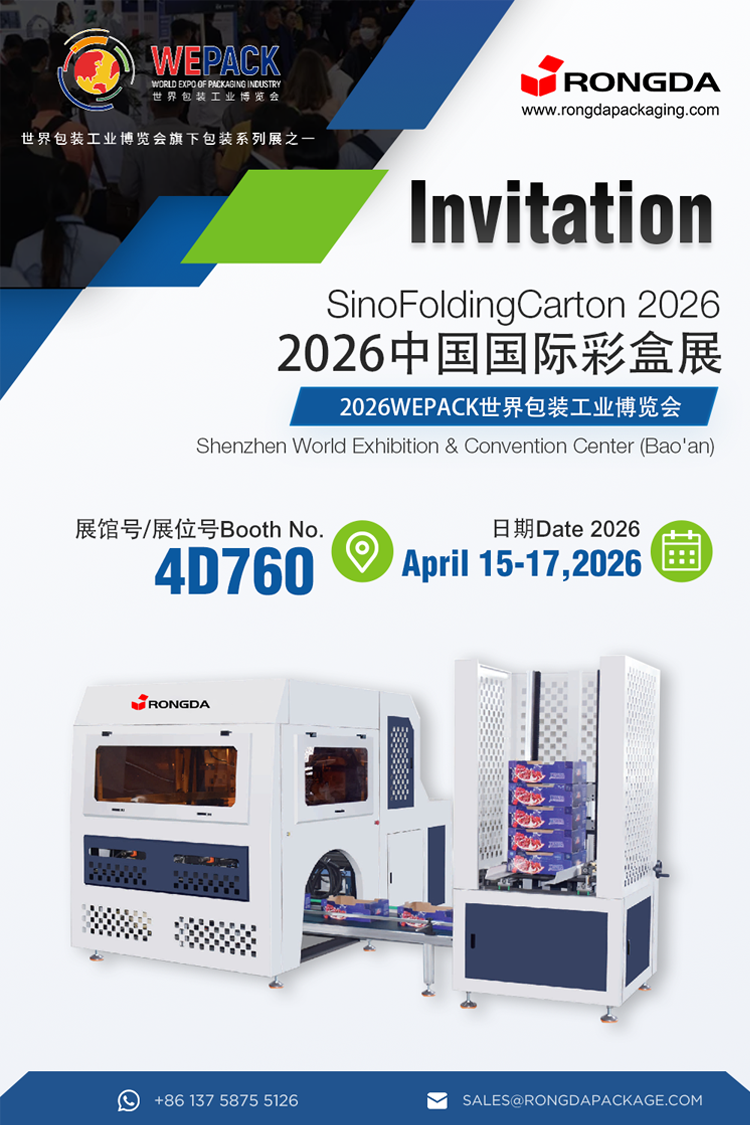 Wenzhou Rongda Packaging Machinery Co., Ltd.dengan sukacitanya mengumumkan penyertaannya dalam 2026 China International SinoFoldingCarton 2026, yang berlangsung dari15 April hingga 17 April 2026, di Pusat Pameran & Konvensyen Dunia Shenzhen (Bao’an).